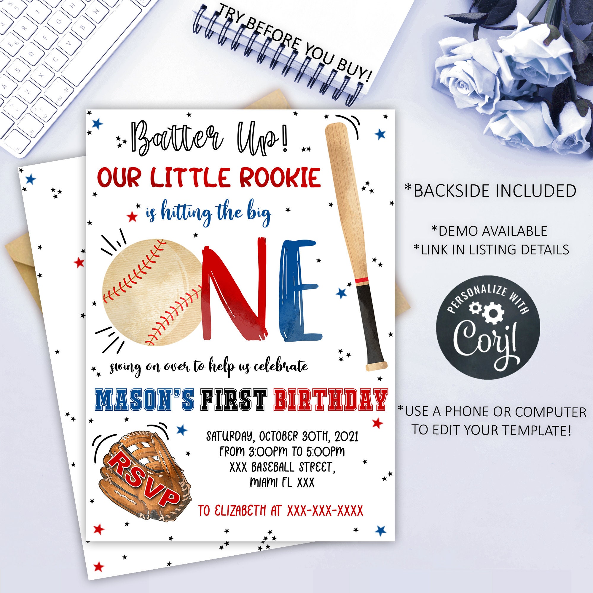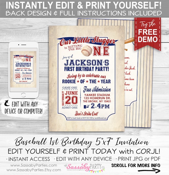 . Web Baseball 1st Birthday Invitation Boy 1st Birthday Invitation Editable Grand Slam Invitation Instant Download Rookie Of The Year Template PartyBeePrintables 5 out of 5 stars 490.