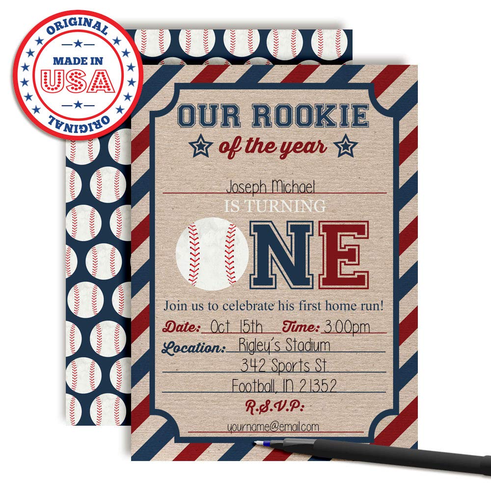Amazon Com Baseball Birthday Invitation Rookie Of The Year Invitation 20 Count With Envelopes Invitations Fill In Cards First Birthday Invitation Handmade Products